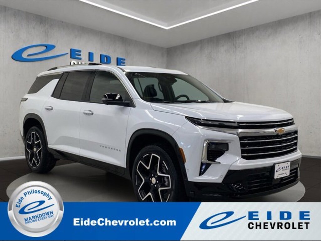2026 Chevrolet Traverse High Country Polar White Tricoat***Leather Seats***3rd Row Seating***Trailer Tow Package/Trailer Hitch***Heated/Cooled Front Seats***Heated Rear Seats***Rear View Camera/Backup Camera***Navigation/Nav/GPS***Keyless Entry***Apple Carplay/Android Auto***Adaptive Cruise Control***Remote Start***Bluetooth Handsfree Phone***Blind Spot Alert***Bose Premium Audio***Satellite Radio***Heated Steering Wheel***360 Camera***Hands Free Liftgate***Power Liftgate***Park Assist***AWD***At Eide Chevrolet, we want to give you the best possible deal on your next new Chevrolet vehicle. Our prices reflect rebates that almost all customers will qualify for and are posted clearly on every vehicle and on-line in alignment with our policy of transparency. There are additional incentives available that you may qualify for including: College Student Purchase, 1st Time Buyer, Military Appreciation, Competitive Lease Conquest, Lease Renewal and more. Please call or stop by and visit us for more information. We brand our dealership as a Markdown Store which incorporates the following elements-Time Saving, Hassle Free & a Fair Price.We have been in business since 1981 and are locally owned and operated. At Eide Chevrolet, we believe in giving you a fair and competitive price upfront. All of our vehicles feature our Markdown Pricing to ensure you feel confident about getting a good deal and excellent overall value in your vehicle purchase. We would also love to have your trade! We will give you Fair Market Trade Value for your vehicle. Want to know what your trade is worth? Use the Accu-Trade Instant Cash Offer feature on our website to receive a guaranteed value for your vehicle! We also offer convenient service hours during the week and all day Saturday. All of our vehicles are also offered with a free Autocheck Vehicle History Report. We are very serious about your satisfaction and our aim is to make your experience with us Simple, Fast & Fun.