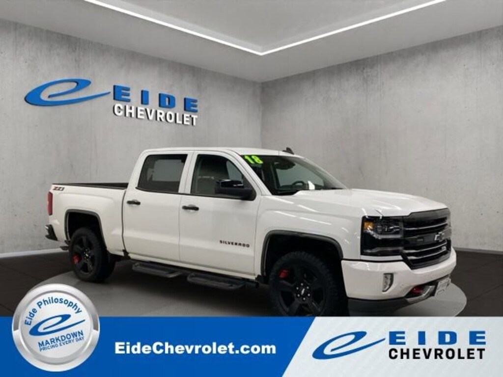 Experience the power and capability of the 2018 Chevrolet Silverado 1500 LTZ 2LZ. This impressive truck is equipped with a robust 6.2L V8 EcoTec3 engine, delivering 420 horsepower and 460 lb-ft of torque, seamlessly paired with an 8-speed automatic transmission and 4-wheel drive. With a striking White exterior, this Silverado is both stylish and ready to take on any challenge.Highlights of this well-equipped Silverado include:- Leather Seats- Trailer Tow Package/Trailer Hitch- Heated/Cooled Front Seats- Heated Front Seats- Rear View Camera/Backup Camera- Navigation/Nav/GPS- Keyless Entry- Bluetooth Handsfree Phone- Satellite Radio- Heated Steering Wheel- Reverse Sensing System- Park Assist- Lane Keep Assist- Lane Departure WarningThe Redline Edition and LTZ Plus Package add even more premium features, including 20-inch Black-painted aluminum wheels, Black exterior accents, Bose premium audio, and advanced safety technologies like Front and Rear Park Assist and Forward Collision Alert.With a spacious and well-appointed cabin, the Silverado LTZ 2LZ delivers both comfort and capability. The leather-appointed, heated and ventilated front bucket seats provide exceptional support and luxury, while the Chevrolet MyLink infotainment system with 8-inch touchscreen keeps you connected and entertained on the road.Whether you're tackling tough jobs or seeking a premium driving experience, this 2018 Chevrolet Silverado 1500 LTZ 2LZ is the perfect choice. Experience the power, technology, and refined style that make this truck a true standout in its class. Schedule a test drive today and discover why the Silverado is the epitome of American truck excellence.We have been in business since 1981 and are locally owned and operated. At Eide Chevrolet, we believe in giving you a fair and competitive price upfront. All of our vehicles feature our Markdown Pricing to ensure you feel confident about getting a good deal and excellent overall value in your vehicle purchase. We would also love to have your trade! We will give you Fair Market Trade Value for your vehicle. Want to know what your trade is worth? Use the Accu-Trade Instant Cash Offer feature on our website to receive a guaranteed value for your vehicle! We also offer convenient service hours during the week and all day. All of our vehicles are also offered with a free Autocheck Vehicle History Report. We are very serious about your satisfaction and our aim is to make your experience with us Simple, Fast & Fun. Eide Chevrolet pre-owned vehicles come standard with one key. If we received more than one key from the previous owner, we include them. Additional keys, as well as dea