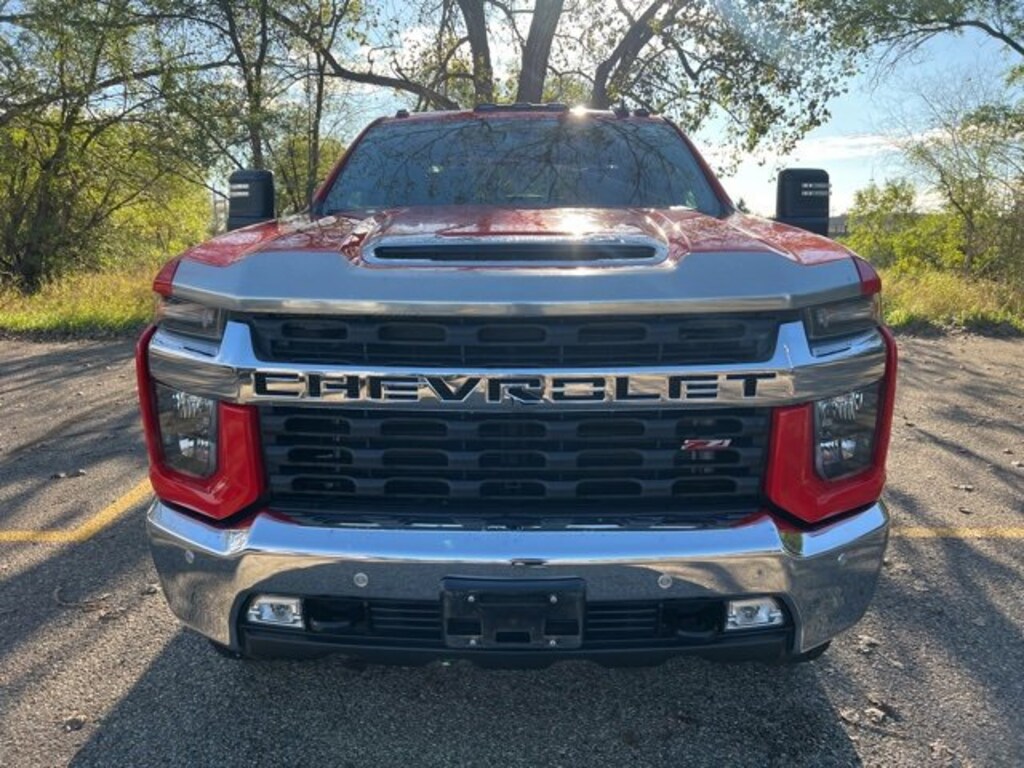The 2020 Chevrolet Silverado 2500HD LT combines strength and comfort with features like leather seats, a trailer tow package, heated front seats, navigation, rear view camera, Apple CarPlay/Android Auto, Bluetooth, satellite radio, and a heated steering wheel. Added convenience and safety come from remote start, keyless entry, blind spot alert, reverse sensing system, park assist, and lane departure warning. Powered by a 6.6L V8 engine paired with a 6-speed automatic transmission and 4WD, this Silverado 2500HD LT stands out in Red Hot with a sleek black leather interior.